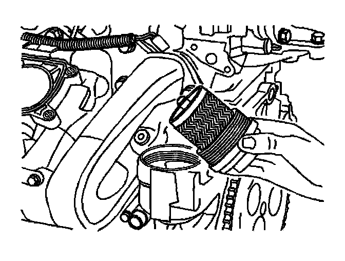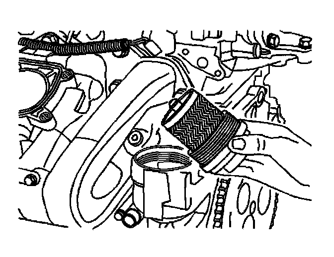 Notice: Over torquing the oil filter cap may cause damage to the oil filter cap resulting in an oil leak.