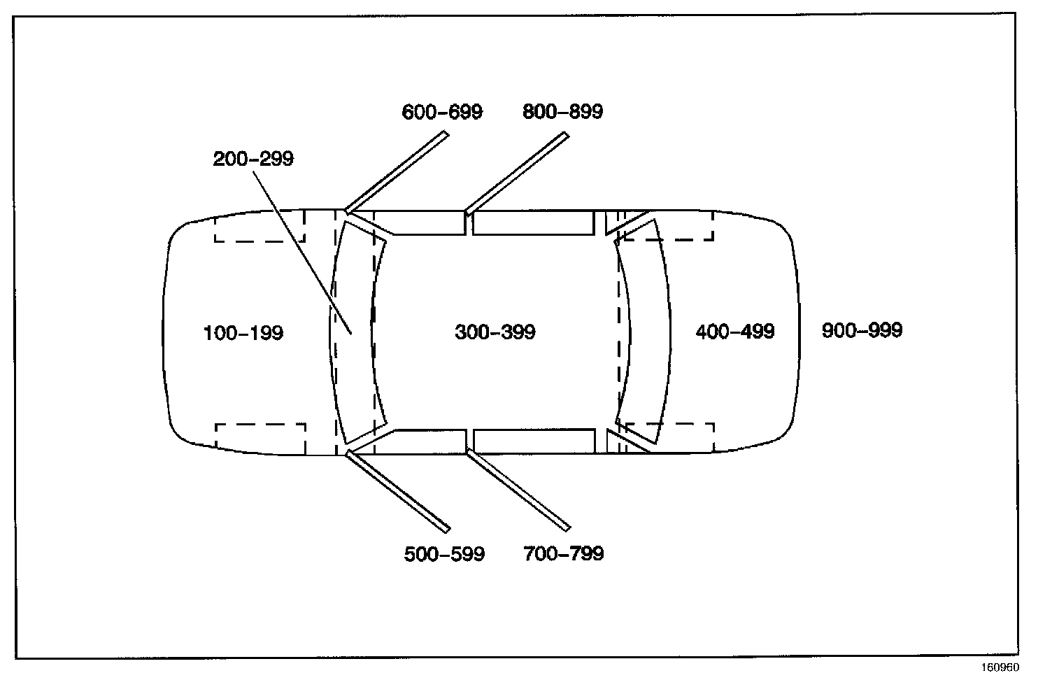 All grounds, in-line connectors, pass-through grommets, and splices have identifying numbers that correspond to where they are located in the vehicle. The table explains the numbering system.