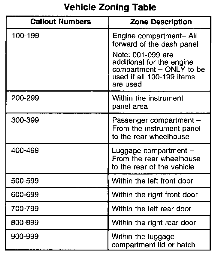 Vehicle Zoning Table: