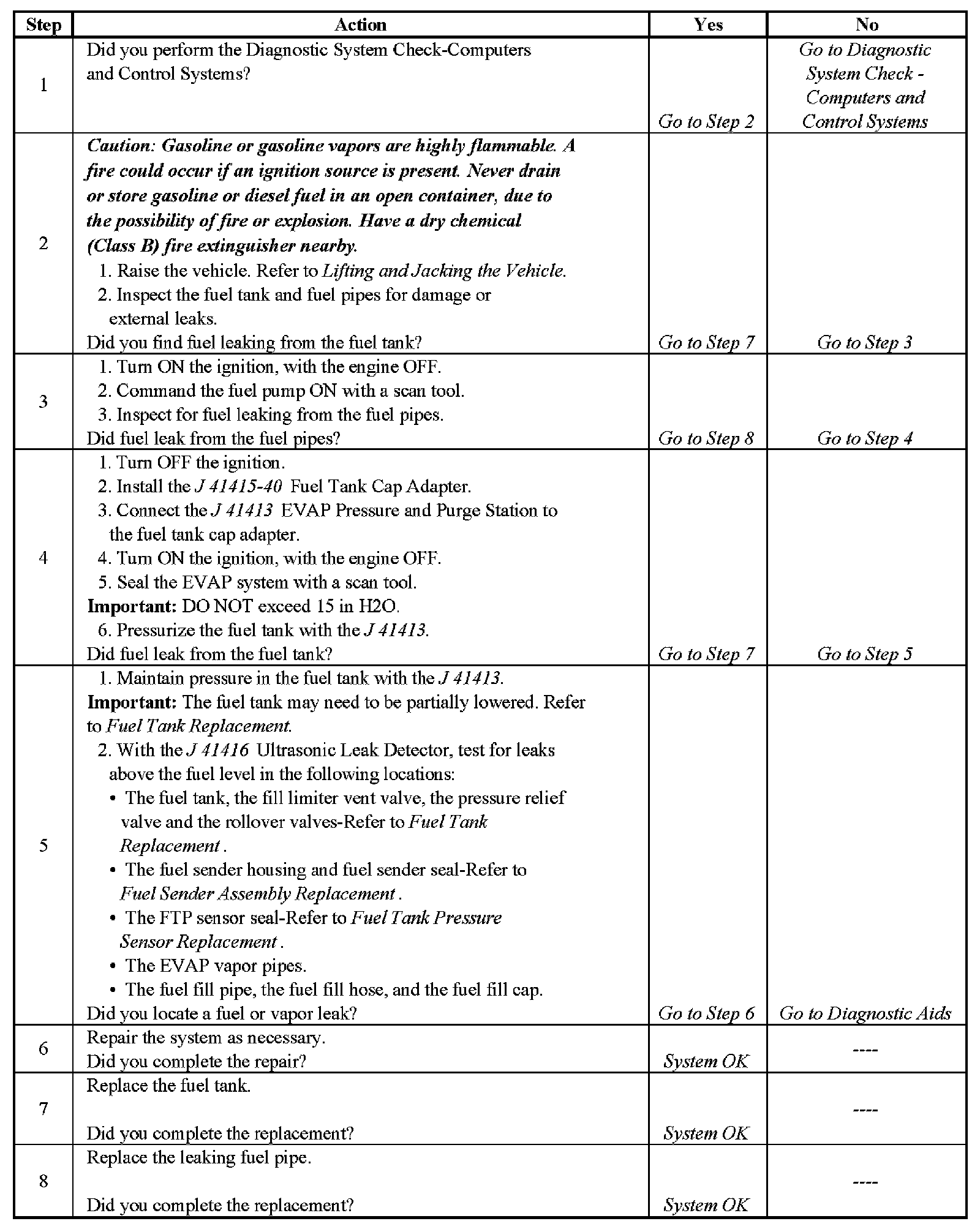 DESCRIPTIONThe fuel tank leak test is used to locate any fuel or fuel vapor escaping the fuel tank area. Fuel vapors escaping above the fuel level will be detected when the evaporative emission (EVAP) diagnostics complete one test cycle. The malfunction indicator lamp (MIL) will illuminate after the EVAP diagnostics complete two test cycles.
