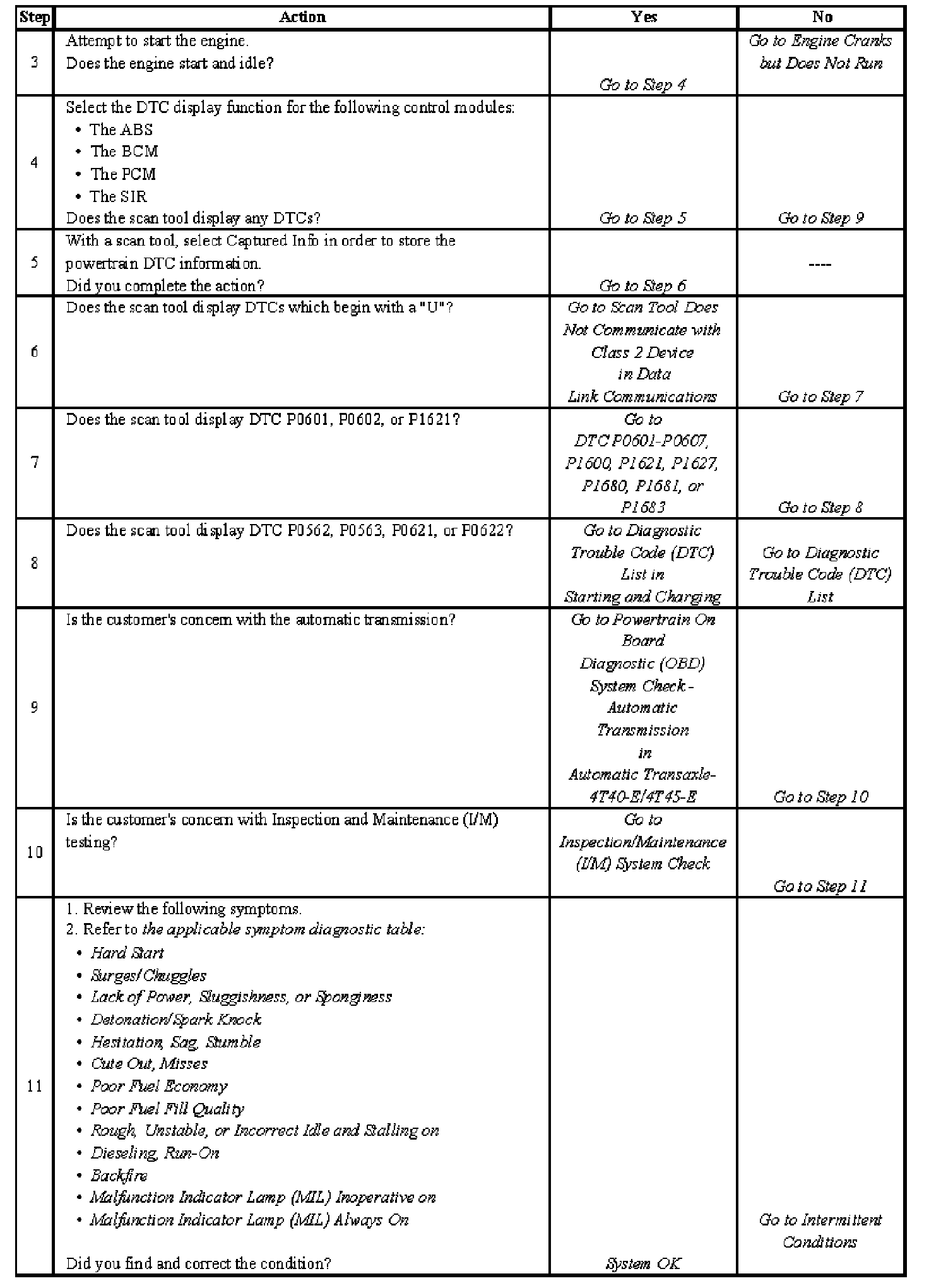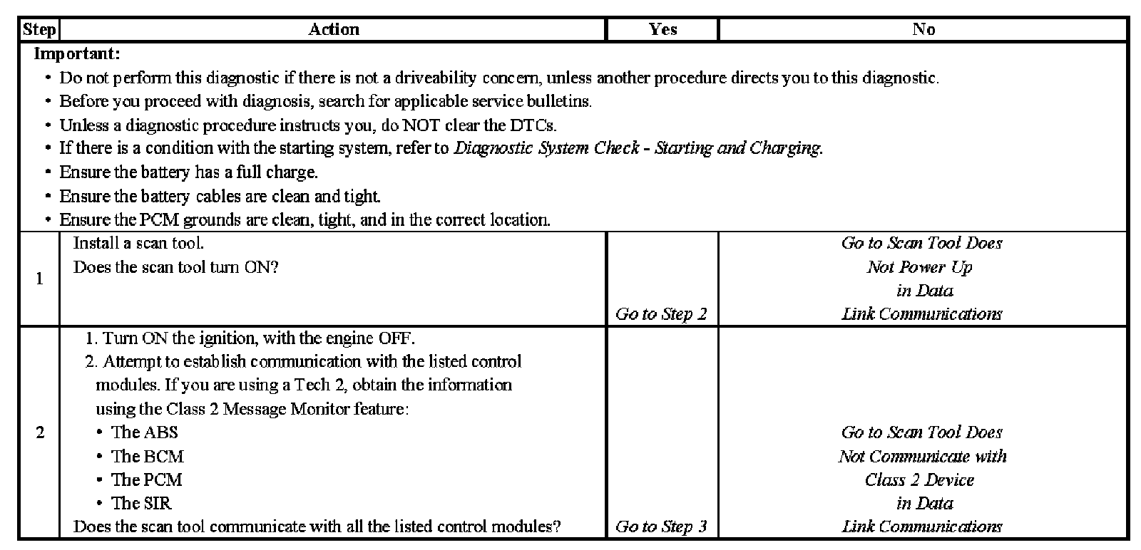 DESCRIPTIONThe Diagnostic System Check-Computers and Control Systems is an organized approach to identifying a condition that is created by a malfunction in the powertrain control system. The Diagnostic System Check must be the starting point for any driveability concern. The Diagnostic System Check directs the service technician to the next logical step in order to diagnose the concern. Understanding and correctly using the diagnostic table reduces diagnostic time, and prevents the replacement of good parts.