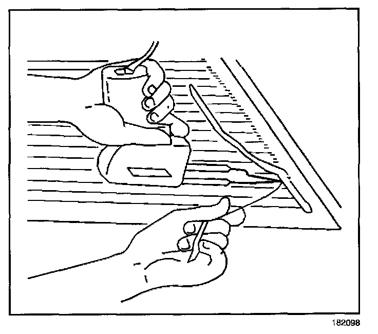 ^ Use pliers to hold the rear defogger bus bar lead wire, antenna or defogger terminal.