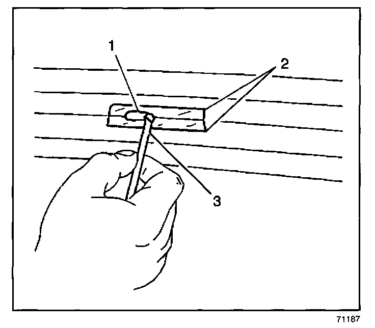3. Use the brush (3) in order to spread the grid line repair material (1). Ensure that the repair material covers all of the areas of the cut out.