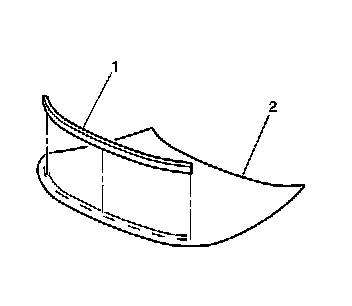11. Install the new windshield acoustic strip (1) to the windshield (2), if equipped or damaged.
