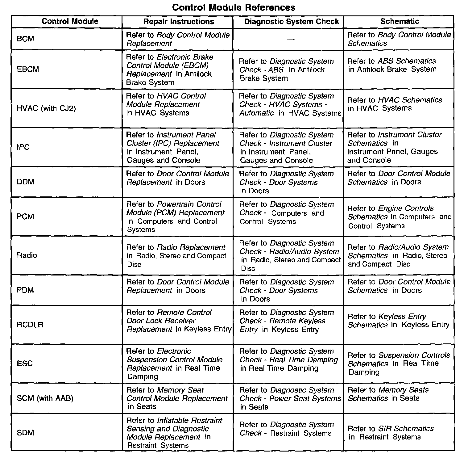 Control Module References