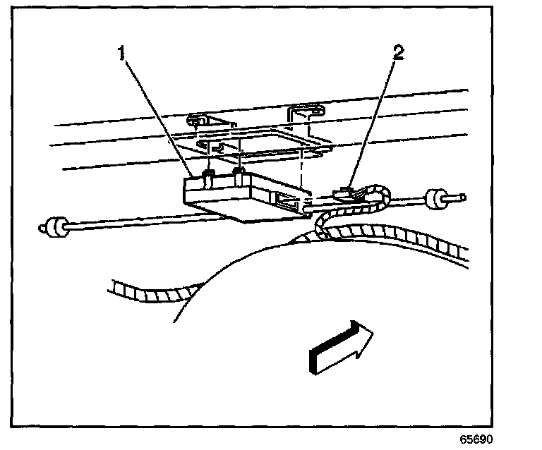4. Pull out the receiver (1) only enough to expose the connector (2).