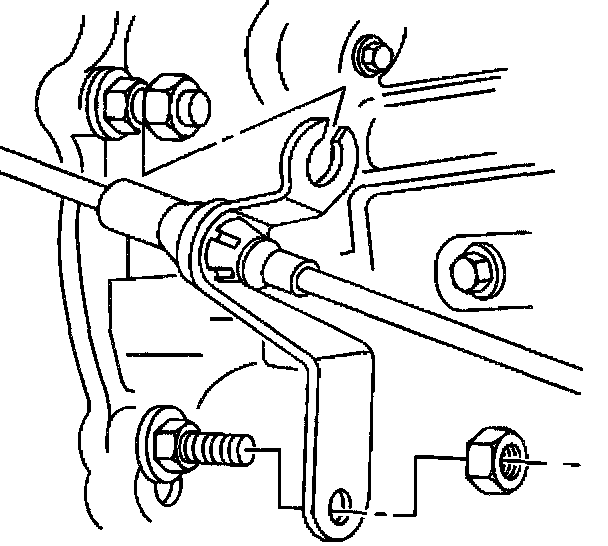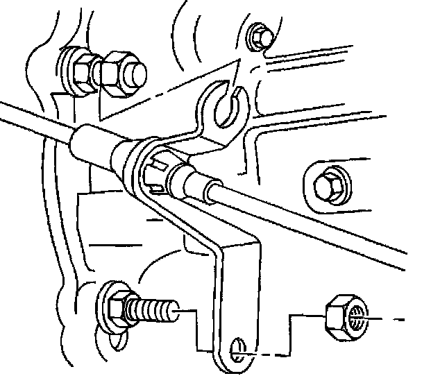 4. Remove the nuts retaining the transmission shift control cable bracket to the transmission.