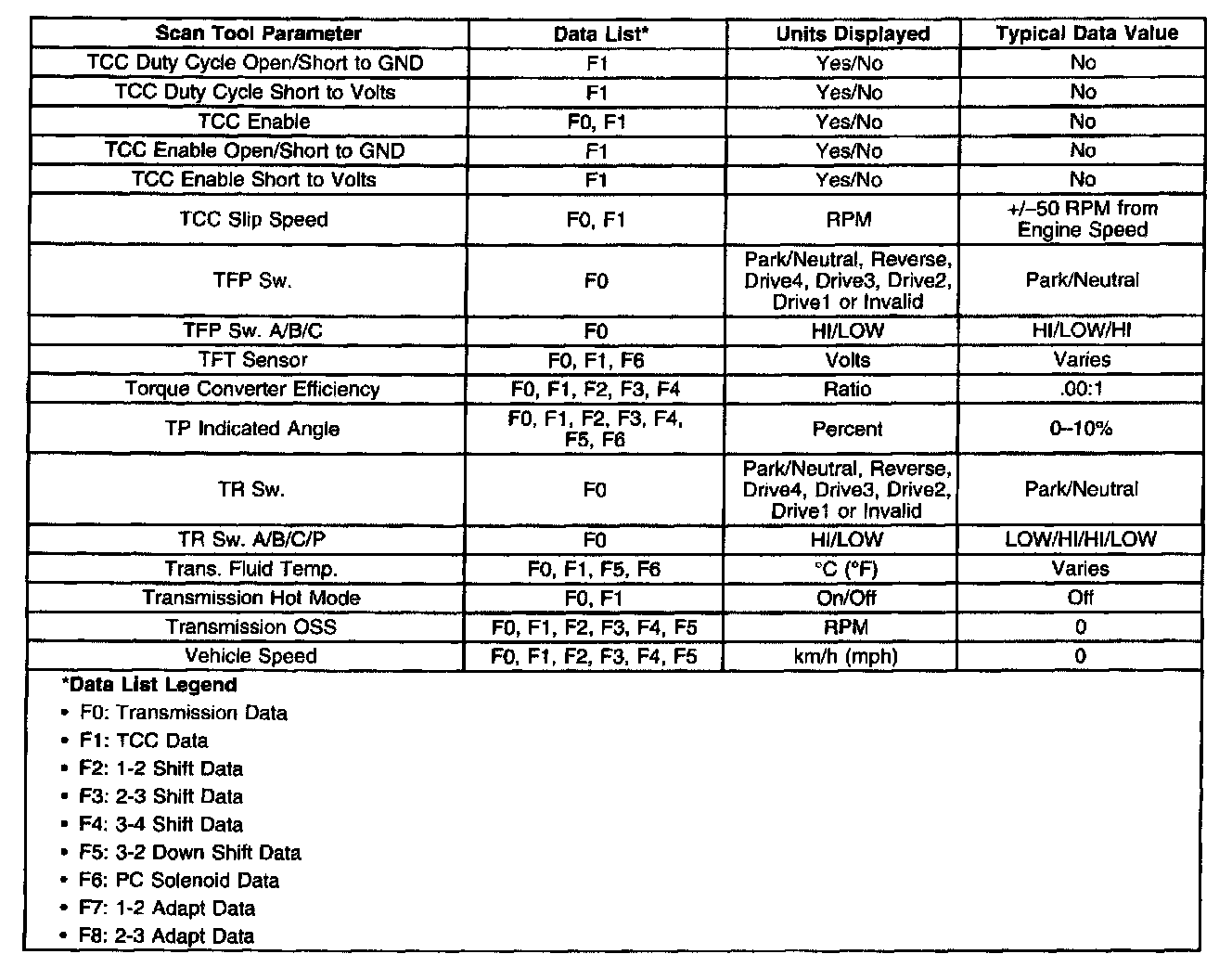 Transmission Scan Tool Data ListUse the scan tool data list under the following conditions: