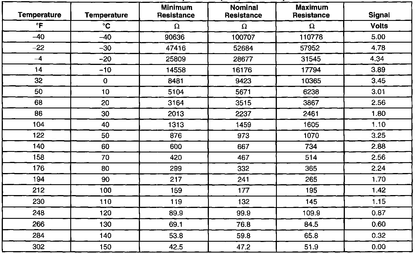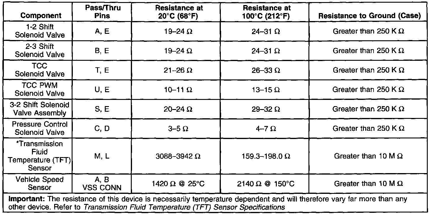 Transmission Fluid Temperature (TFT) Sensor Specifications