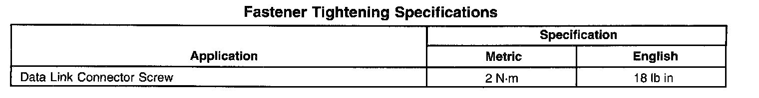 Fastener Tightening Specifications: