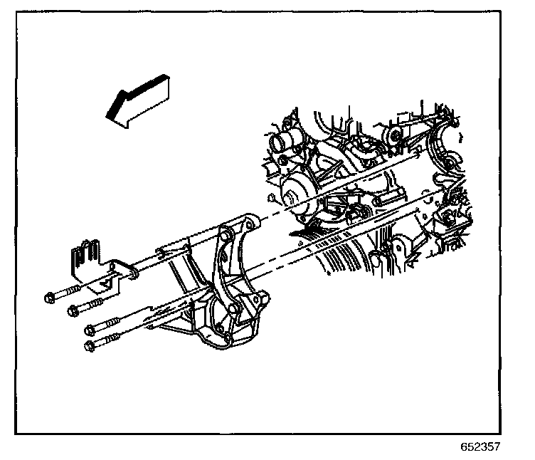 1. Install the generator bracket, power steering reservoir bracket and generator bracket bolts to the cylinder head.