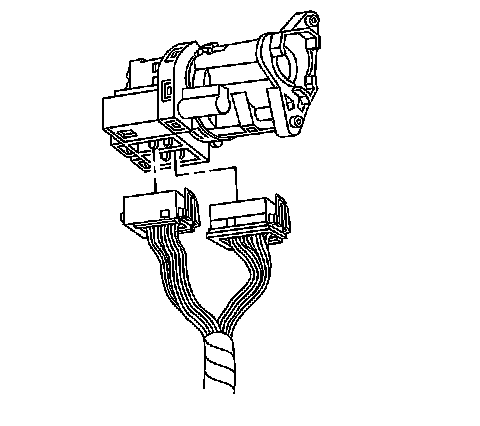 6. Remove the ignition switch lock cylinder electrical connector from the retaining tab on the side of the ignition switch.