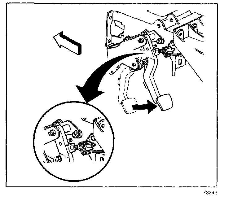 3. Adjust the cruise control release switch. Grasp the clutch pedal and pull fully rearward against the pedal stop. Audible clicks may be heard as the switch moves into the adjusted position.