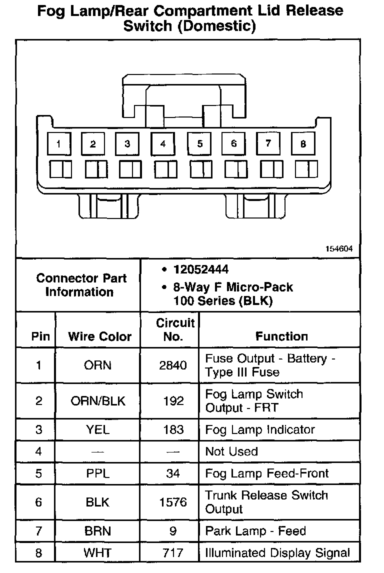 Fog Lamp/Rear Compartment Lid Release Switch (Domestic):