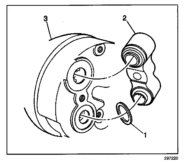 IMPORTANT: After tightening the compressor hose (3) to the compressor (2), there should be a slight sealing washer gap (1) of approximately 1.2 mm (3/64 in) between the compressor hose (3) and the compressor (2).