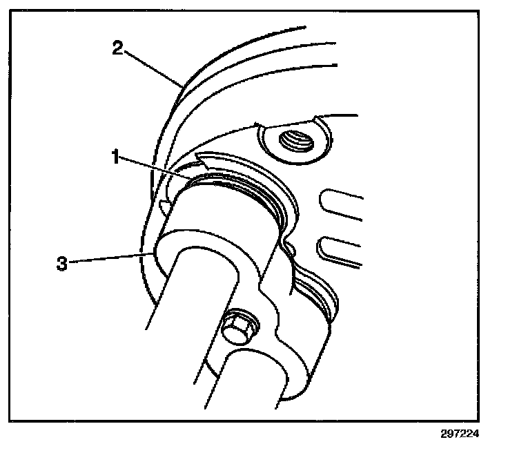 2. Using a lint-free clean, dry cloth, carefully clean the sealing surfaces of the compressor hose (2) and the compressor (3).
