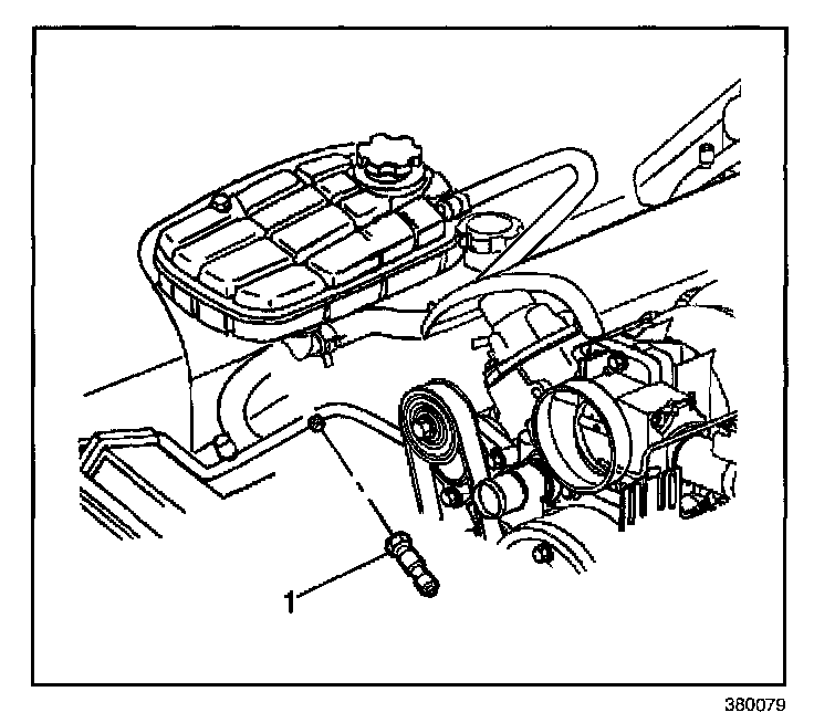 2. Remove the pressure sensor (1) from the evaporator tube - front.