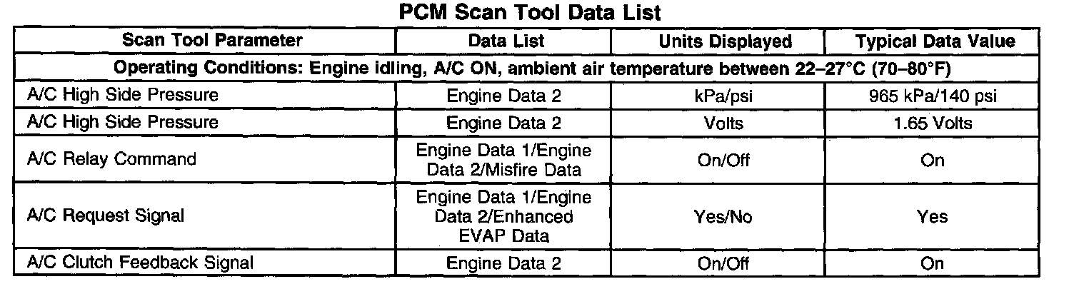 PCM Scan Tool Data List: