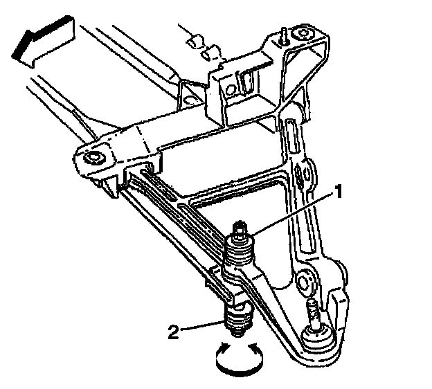 Important: When adjusting the spring adjuster bolt, J 42743 must be used in order to prevent damage to the rubber shear pad on the end of the bolt. One complete turn of the spring adjuster bolt is equal to 2 mm (5/64 inch).