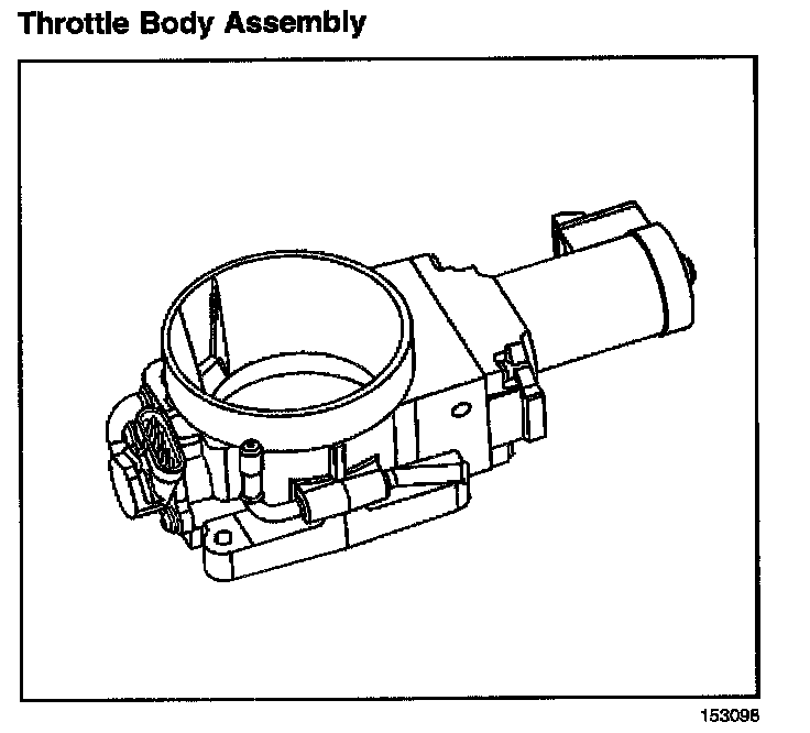 The throttle body assembly attaches to the intake manifold. The throttle body controls air flow into the engine, thereby controlling engine output. The throttle actuator motor mounted on the throttle body opens the throttle valve within the throttle body. Engine coolant flows through the coolant cavity on the bottom of the throttle body in order to prevent throttle valve icing during cold weather operation. The throttle body also provides the location for mounting the Throttle Position (TP) sensor.