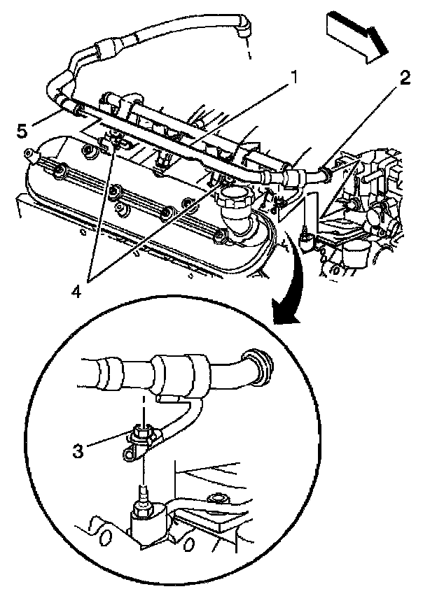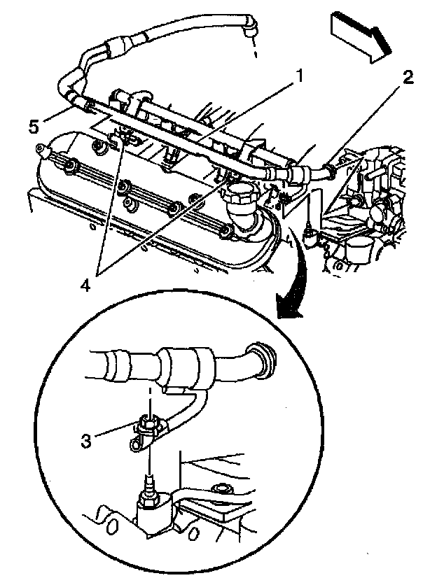 6. Release the PCV hose assembly from the mounting brackets (4).