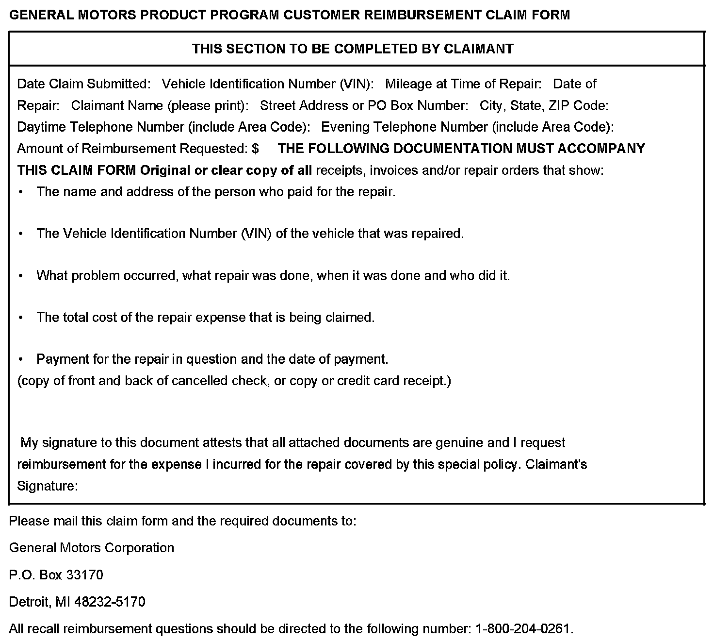 GENERAL MOTORS PRODUCT PROGRAM CUSTOMER REIMBURSEMENT PROCEDURE