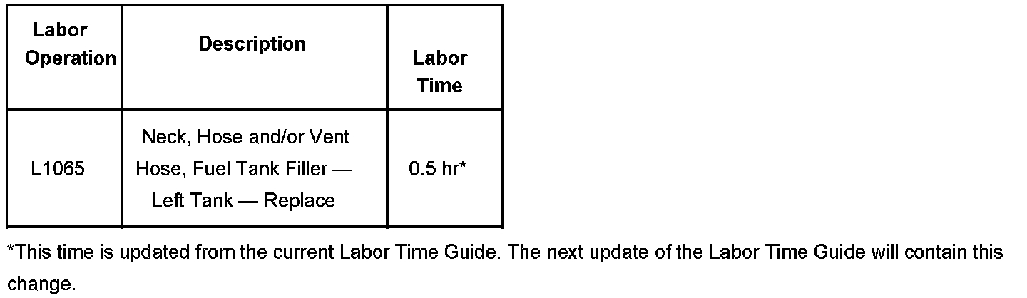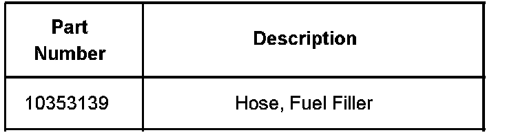 Replace the fuel tank filler hose with P/N 10353139. This new hose has been redesigned to provide smoother flow conditions within the section. Use the procedure listed below.