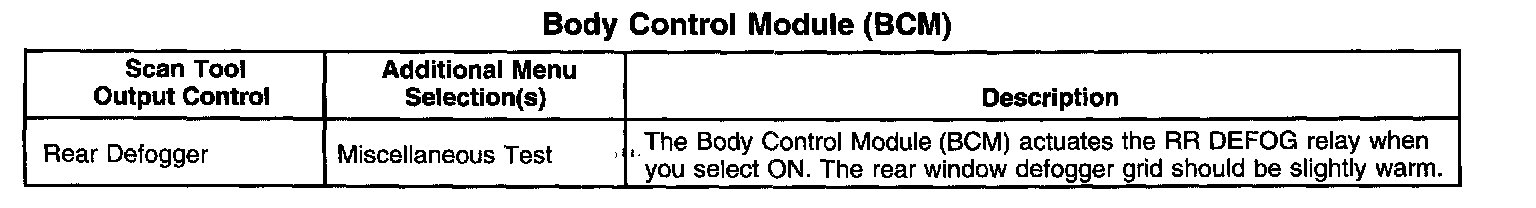 Scan Tool Output Controls - Body Control Module (BCM)