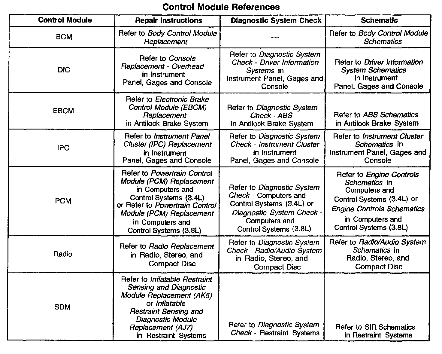 Control Module References: