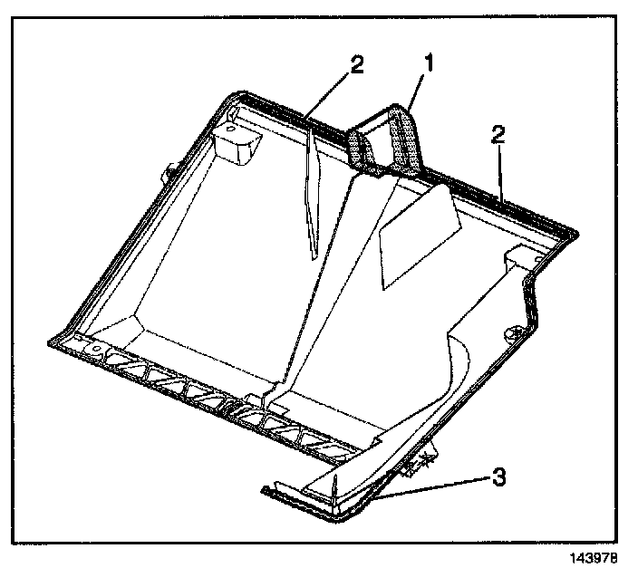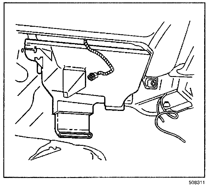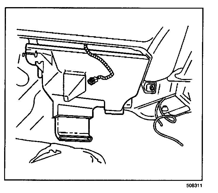 IMPORTANT: Position the heater outlet cover downward and rearward in order to disconnect the cover from the rear area floor duct assembly.