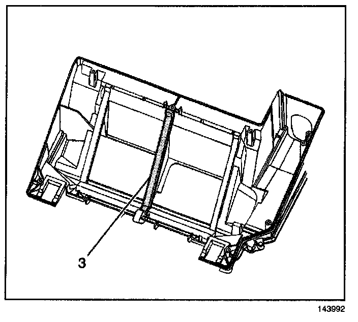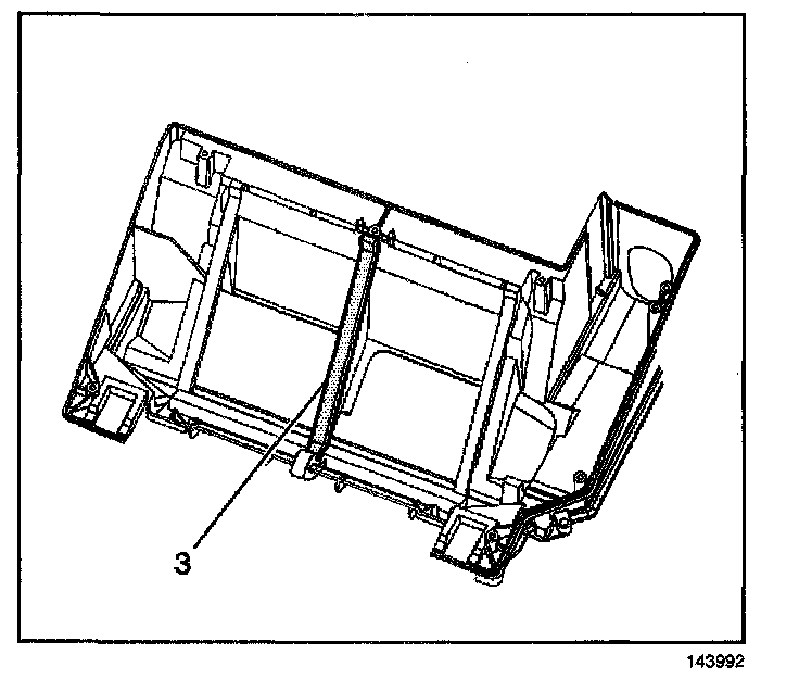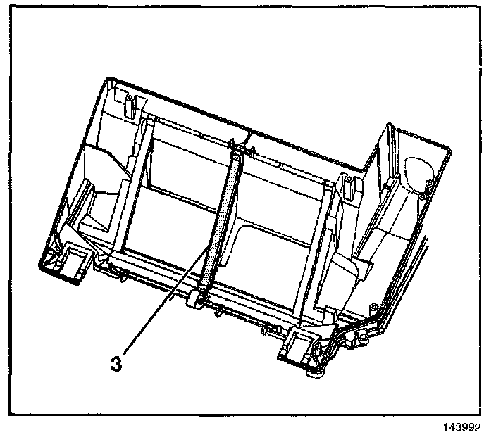 3. Install a new heater core center seal (3) to the HVAC case.
