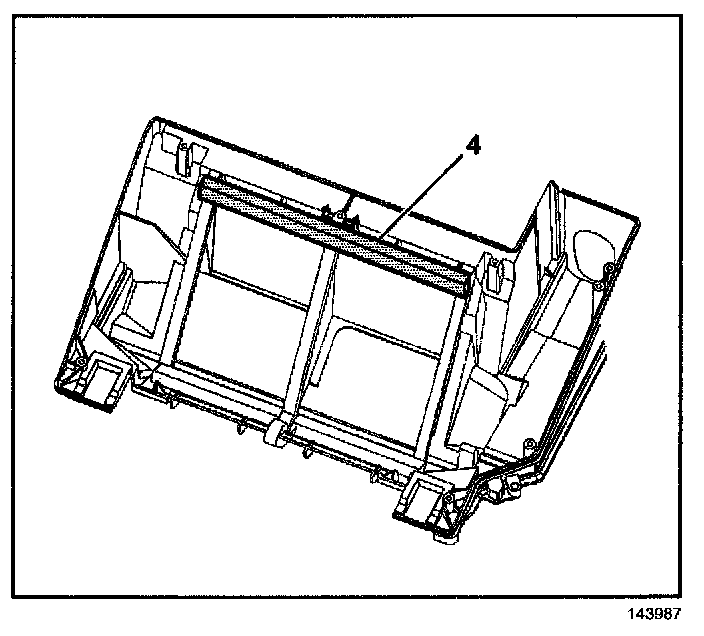 22. Remove and discard the heater core lower seal (4) from the HVAC case.