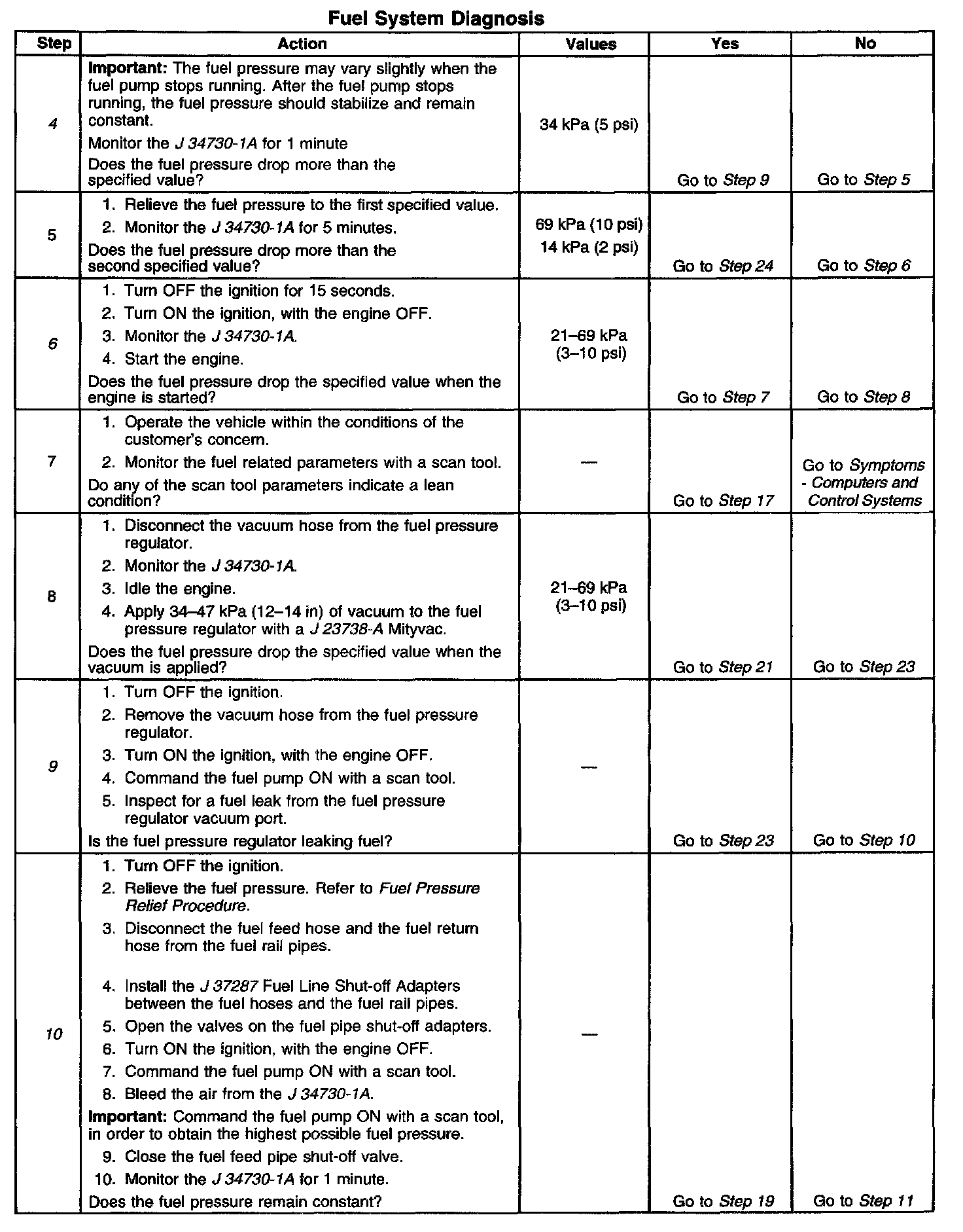 11. This step tests for a leaking fuel injector, or fuel pressure regulator. If the fuel pressure remains constant during this test, the fuel injectors are not leaking fuel.