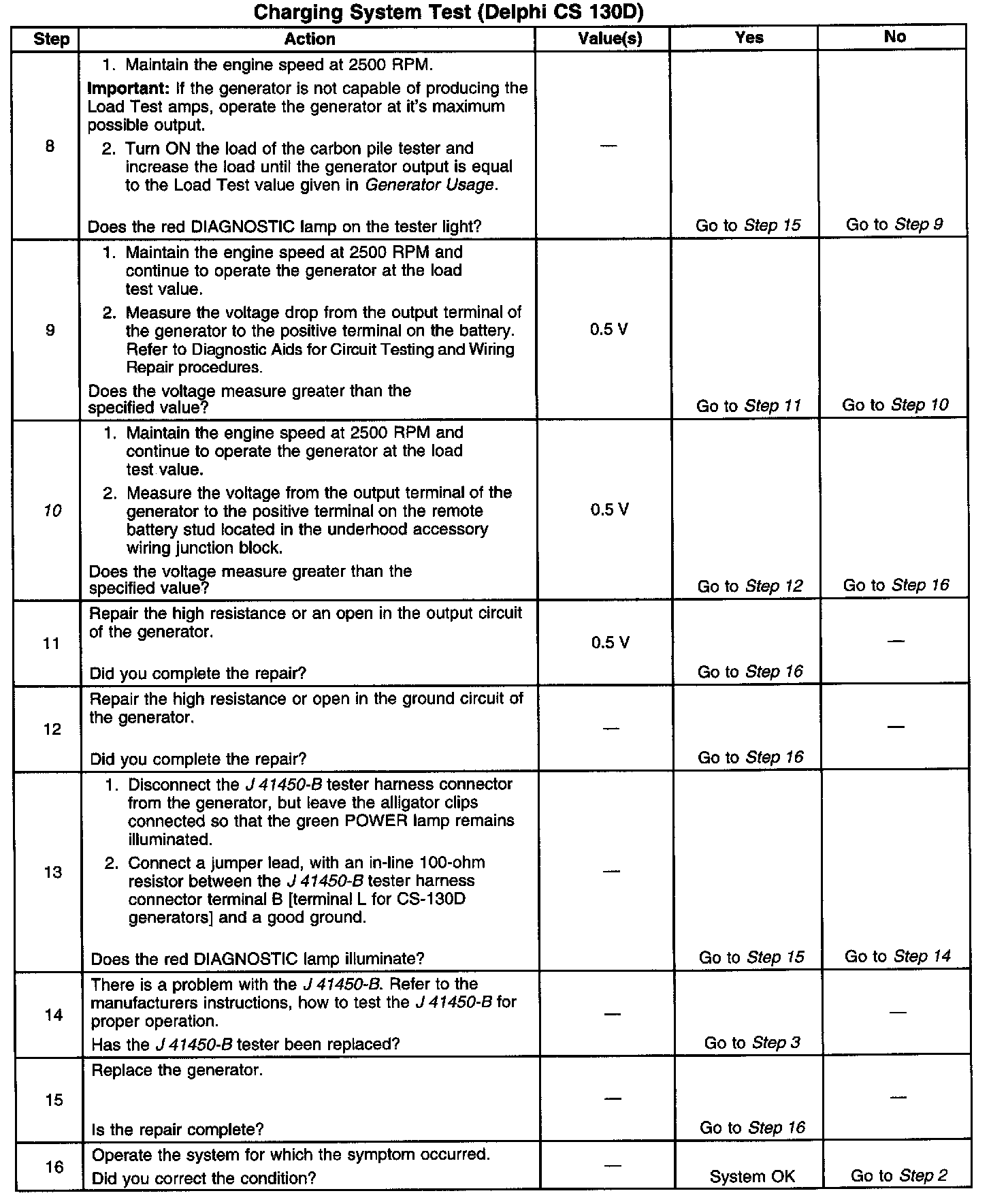 10. If the test has shown the generator to be OK, however the condition remains, test the PCM or its control circuit(s) to the generator.