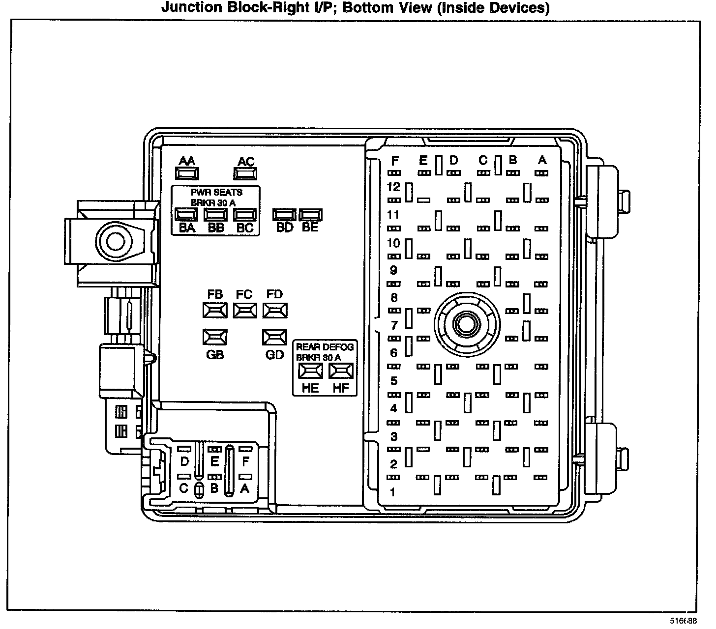 Junction Block-Right I/P; Bottom View (Inside Devices):