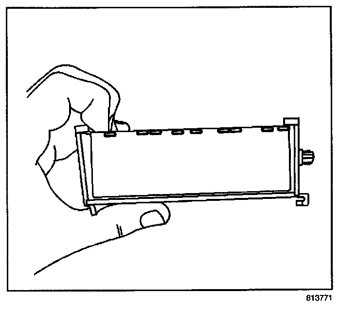 6. Squeeze the plastic bracket assembly upward until the large, plastic snap-fingers engage on the inboard edge of the metal bracket.