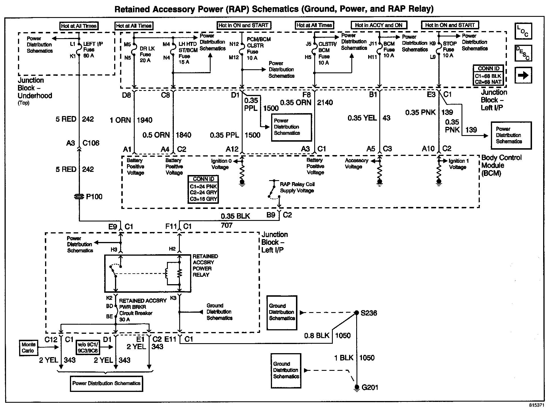 Retained Accessory Power (RAP) Schematics: Ground, Power, And RAP Relay: