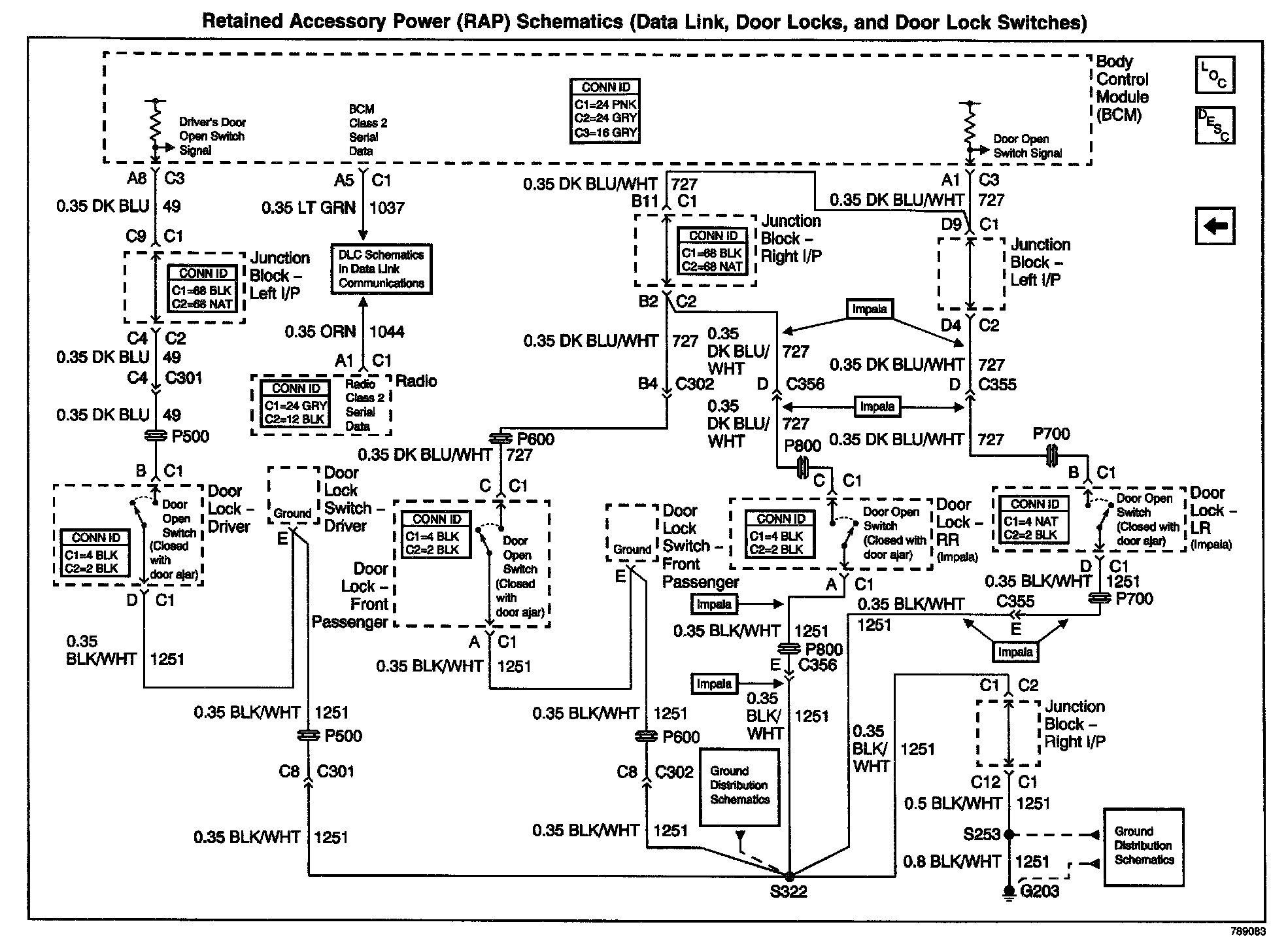 Retained Accessory Power (RAP) Schematics; Data Link, Door Locks, And Door Lock Switches: