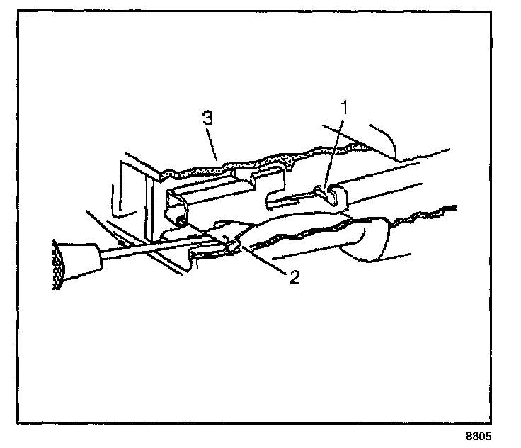 4. Grasp the wire at the back of the connector body and gently pull the terminal (1) from the connector body (3).