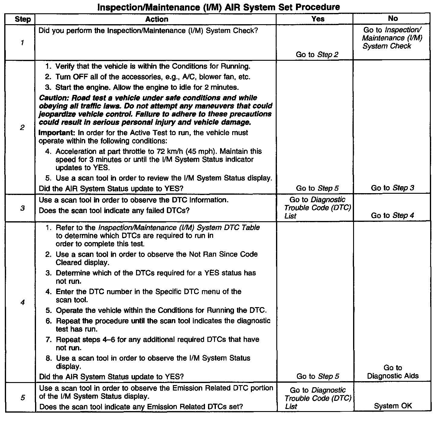 I/M AIR System Set Procedure