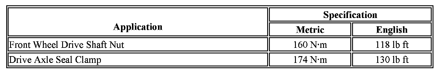Wheel Drive Shafts Fastener Tightening Specifications