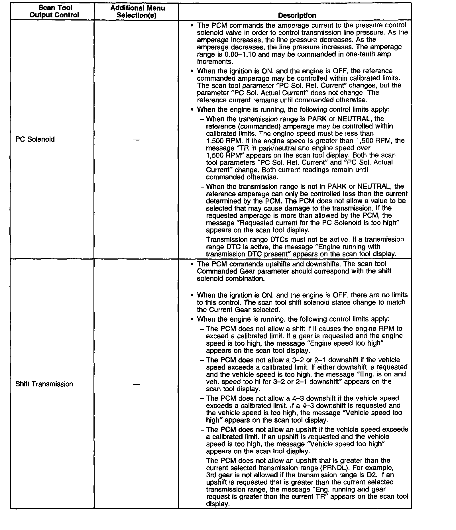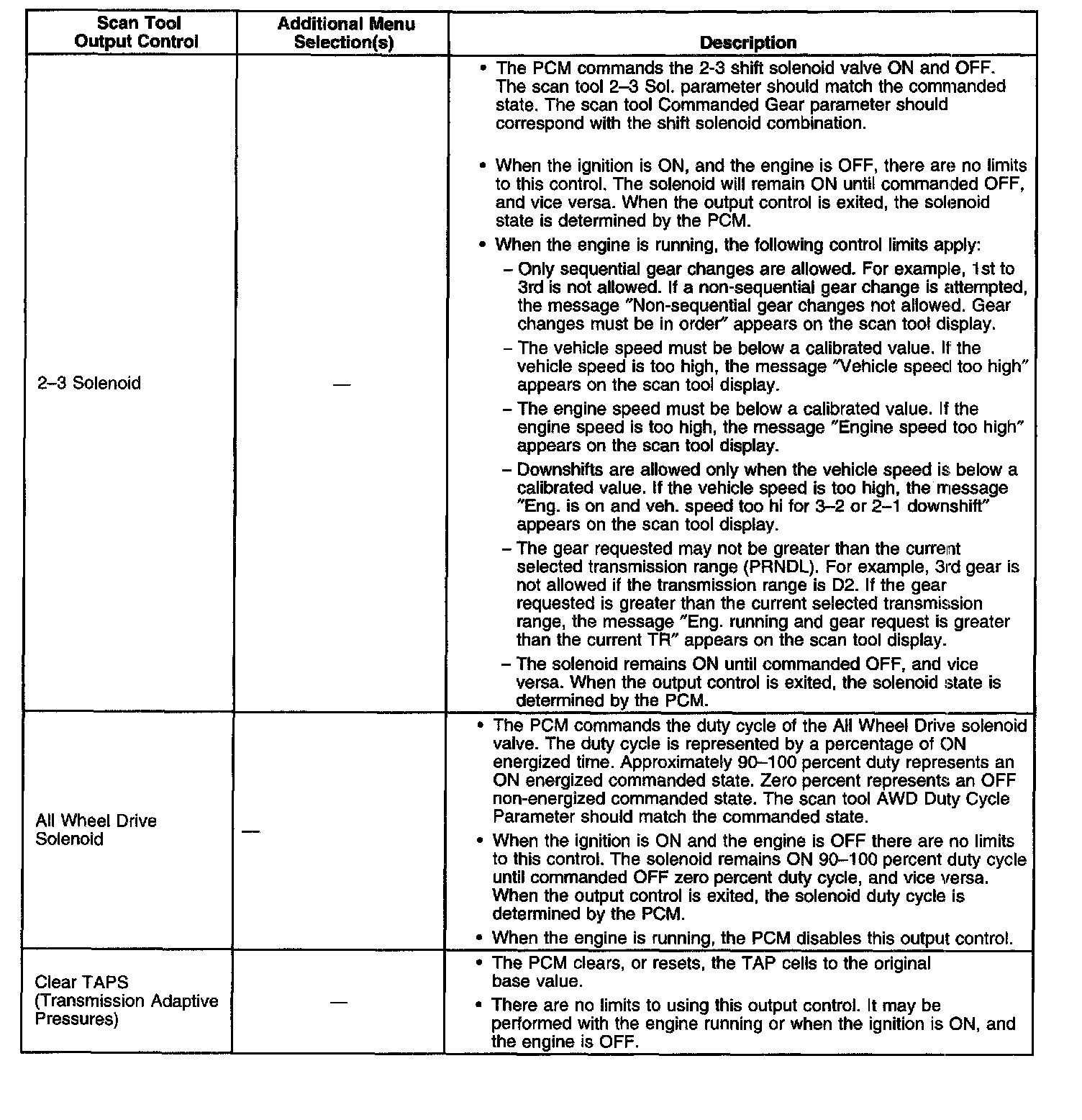 Scan Tool Output Controls