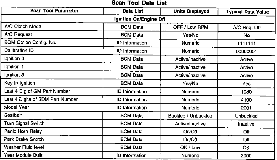 Scan Tool Data List