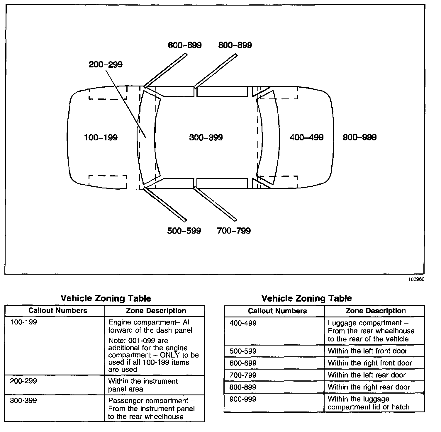 All grounds, in-line connectors pass-through grommets, and splices have identifying numbers that correspond to where they are located in the vehicle. The following explains the numbering system.