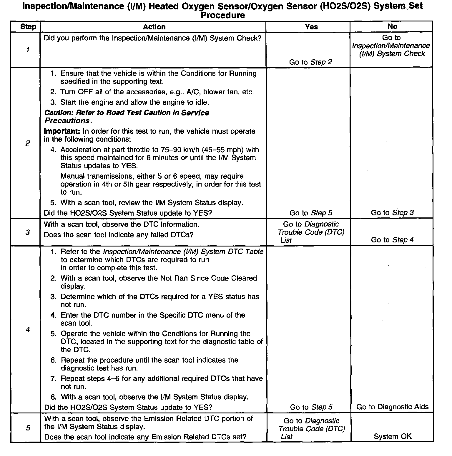 1. Perform the I/M System Check before performing this test. Failure to do so may result in difficulty updating the status to YES. Inspection/Maintenance (I/M) System Check