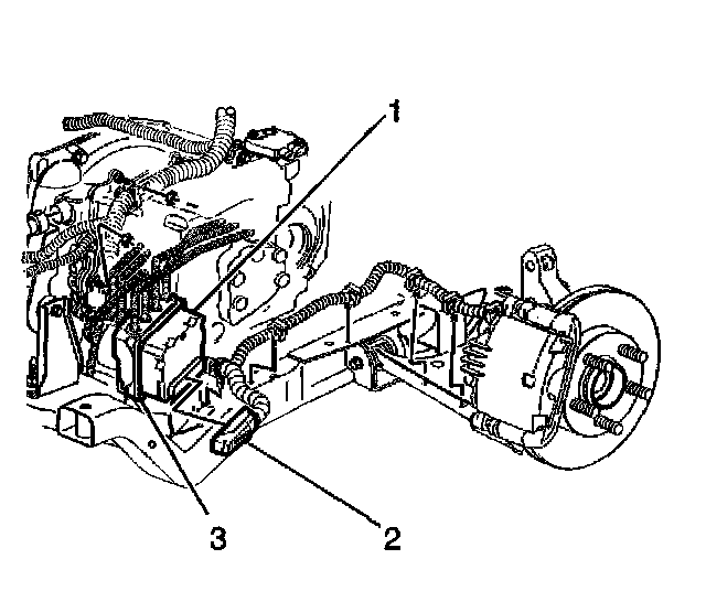 5. Disconnect the EBCM harness connector (2) from the EBCM (1).