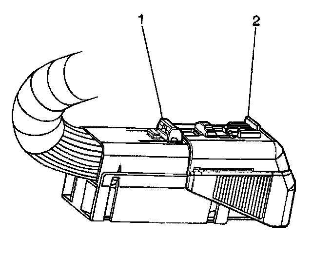 3. Remove the Connector Position Assurance (CPA) (2) from the connector lock tab (1).