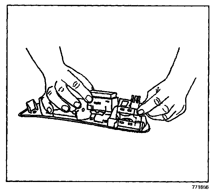 3. Remove the window switch by pressing the thumb tab retainers outward and remove the switch from the pull handle.