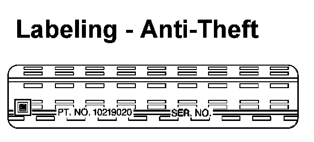 NOTE: The anti-theft label found on some major body panels MUST be covered before performing any painting, rustproofing or undercoating procedures. The mask must also be removed following those procedures. Failure to follow these precautionary steps may result in liability for violation of the Federal Vehicle Theft Prevention Standard, and subject the vehicle owner to possible suspicion that the part was stolen.Labeling - Anti-Theft:
