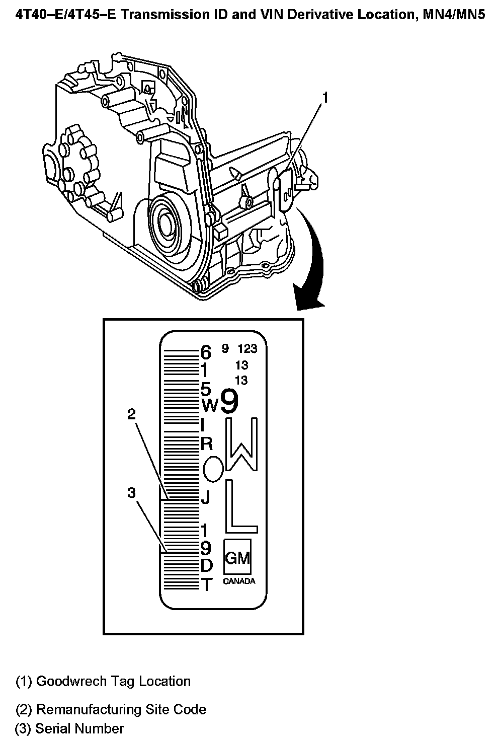 VIN DERIVATIVE LOCATION 4T40-E/4T45-E